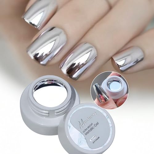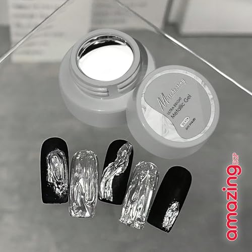 THE PACK - طلاء أظافر جل سائل بلمعة عاكسة معدنية من ذا باك، بحجم 8 جرام، متوفر بألوان ذهبي، فضي، وذهبي وردي، بتصميم ثلاثي الأبعاد، ومثالي لصالونات تجميل الأظافر (فضي)
