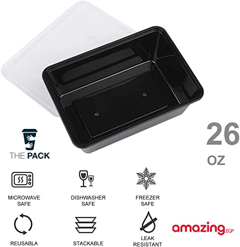 THE PACK - علب بلاستيك لتحضير الوجبات وحفظ الطعام مع اغطية - علبة بنتو قابلة للاستعمال مرة واحدة امنة للاستخدام في الثلاجة والميكروويف والغسالة الاطباق750 مل 26 اونصة من ذي باك 5 عبوات شفاف