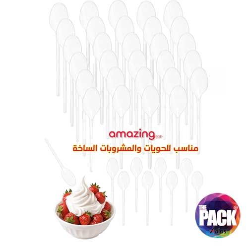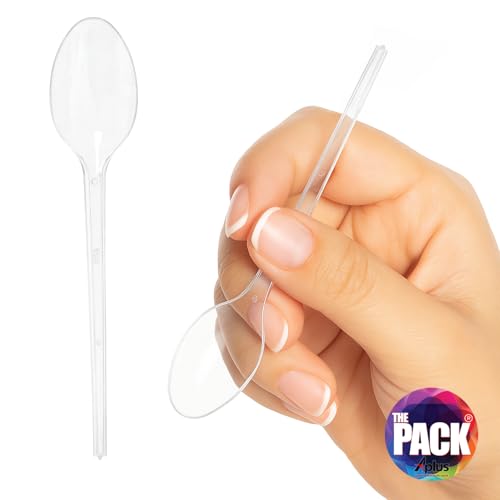 THE PACK - معالق بلاستيكية شفافة صغيرة، خالية من البيسفينول أ، للحلويات والمشروبات الساخنة من ذا باك، (50) 9.5 سم، 100 قطعة