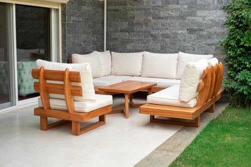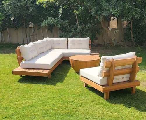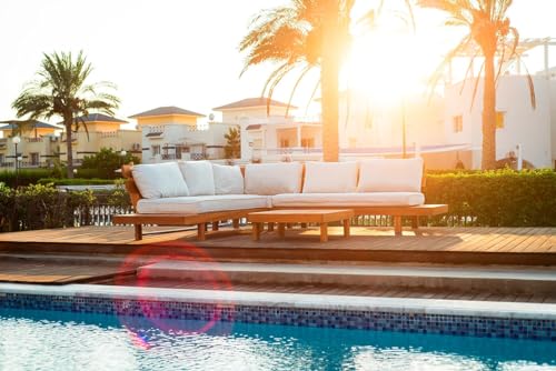 The Picnic Factory - طاولة أثاث خارجية على شكل حرف L من ذا بيكنك فاكتوري، بيج