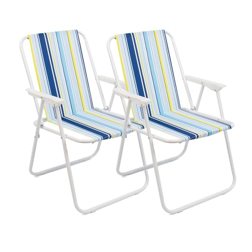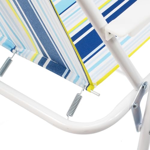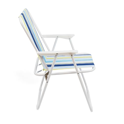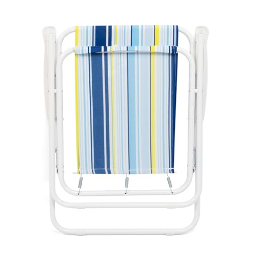 THE SECRET HOME - كرسي شاطئ قابل للطي من ذا سيكريت هوم - معدني وبوليستر - مقعد مثالي للشاطئ والحديقة والشرفة موديل 1 - ازرق - داكن - اصفر خليط البوليستر والستيل
