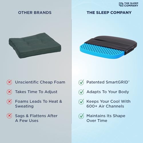 The Sleep Company - مخدة مقعد سمارت جريد، دعم العظام، تقوية عظم الذنب والعصعص وعرق النسا وتخفيف آلام اسفل الظهر، تصحيح وضعية مريح، لكرسي المكتب او السيارة أو الكراسي المنزلية من ذا سليب كومباني، تدعم حتى 125 كجم