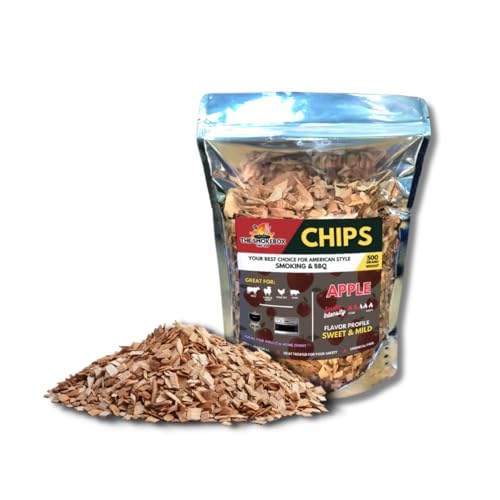 - خشب تفاح فاخر: 500 جرام من رقائق خشب التفاح الأصلية التي تضفي نكهة دخان حلوة وفاكهية إلى الأطعمة المشوية والمدخنة
