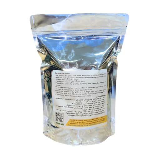 - خشب برتقالي فاخر: 500 جرام من رقائق خشب البرتقال الأصلية التي تضيف نكهة دخان رقيقة ولاذعة إلى الأطعمة المشوية والمدخنة