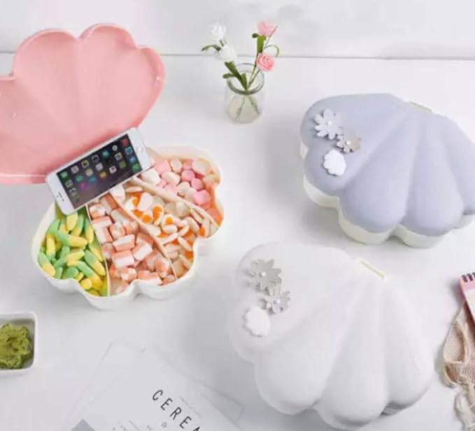 Generic - طبق الوجبات الخفيفة بتصميم على شكل صدفة رفيع للغاية مزود بحامل موبايل يمكن حمله بسهولة أثناء التنقل والسفر متعددة الألوان بلاستيك