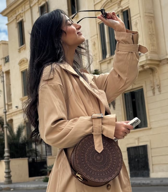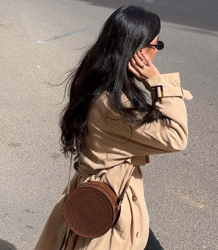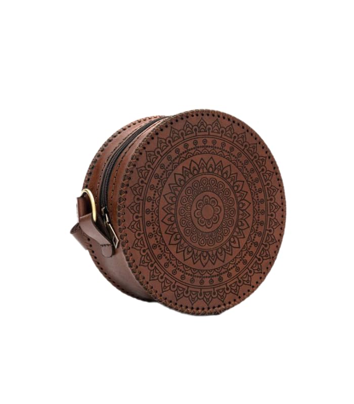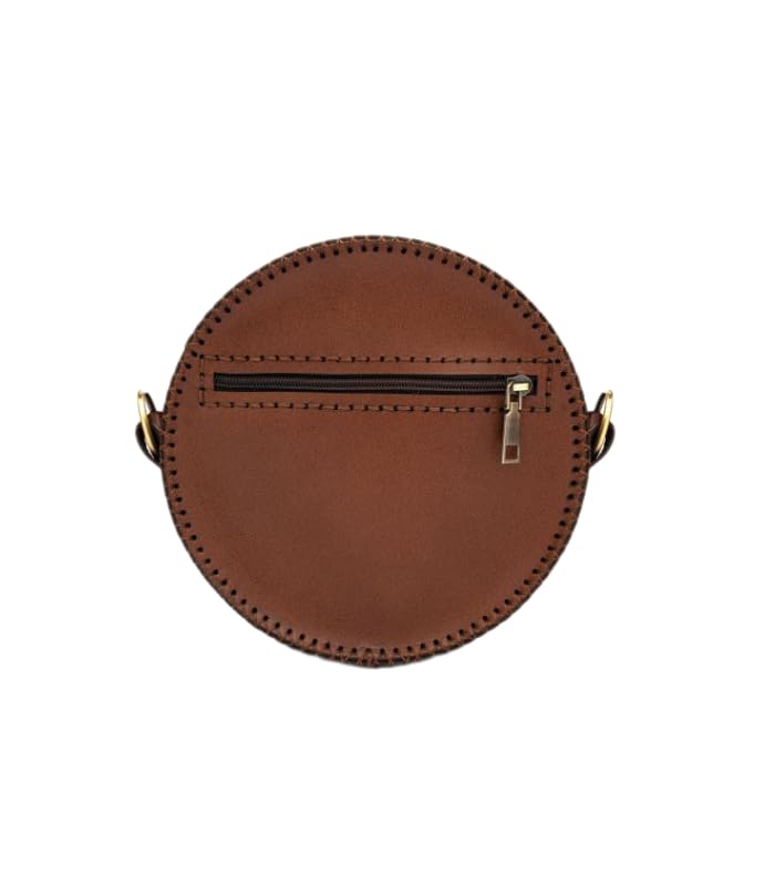 Generic - الحقيبة الدائرية الأنيقة من الجلد البني تجمع بين الأناقة العصرية والتصميم التقليدي الفريد