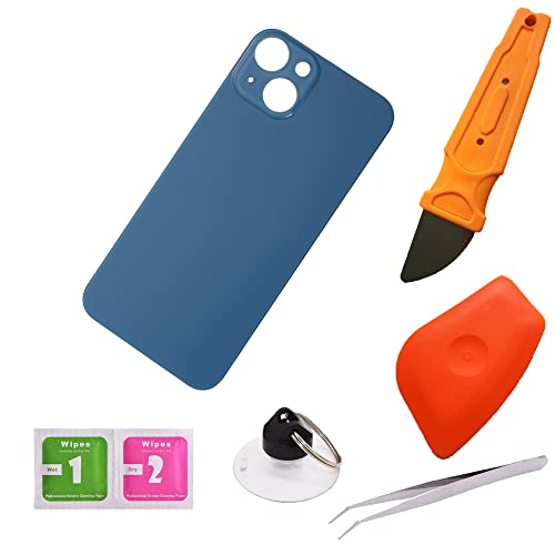 THE TECH DOCTOR - غطاء خلفي زجاجي بديل من ذا تيك دكتور لموبايل ايفون 13 ميني - كامل مع ادوات - طقم اصلاح احترافي (ازرق)