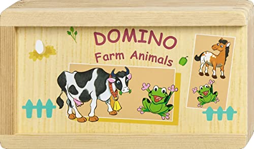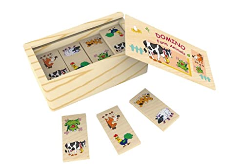 The Toy Company - لعبة دومينو خشبية بطابع حيوانات المزرعة مكونة من 28 بلاطة في علبة خشبية من ذا توي كومباني