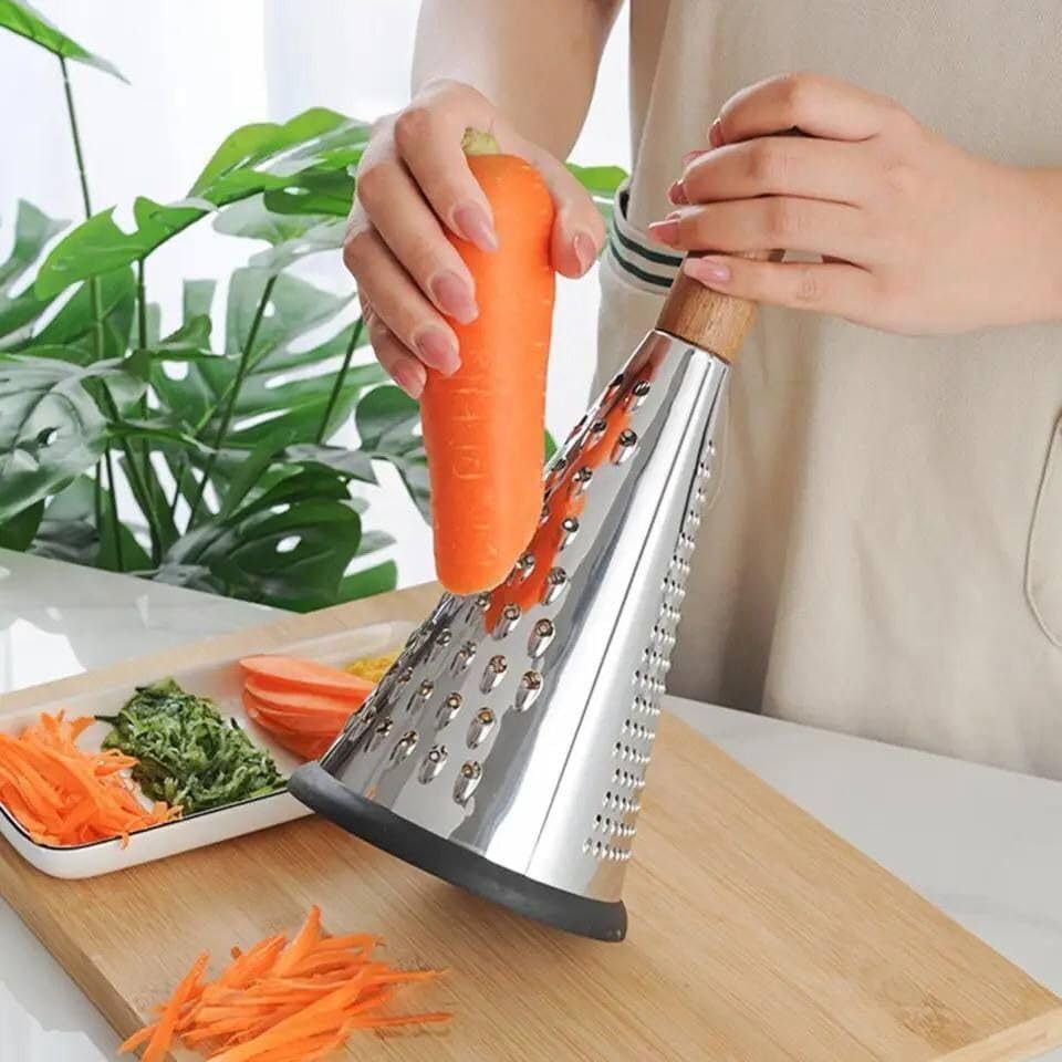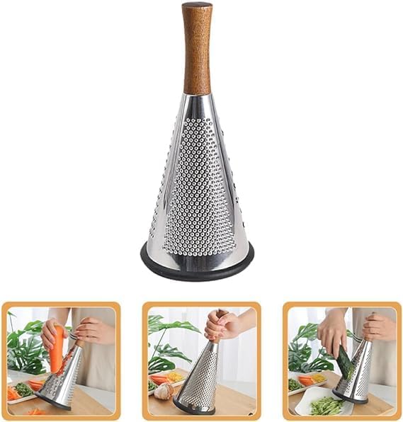 Generic - مبشرة مثلثة الشكل مخروطية من الفولاذ المقاوم للصدأ بمقبض مصنوع من الخشب قطعة واحدة