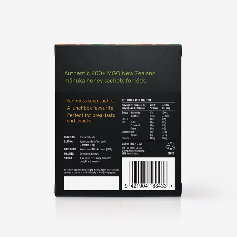 THE TRUE HONEY CO. - أكياس عسل مانوكا للأطفال كو بازيز من ذا ترو هوني كو. - 30 كيس - 400 ميثيل جليوكسال - 150 جرام