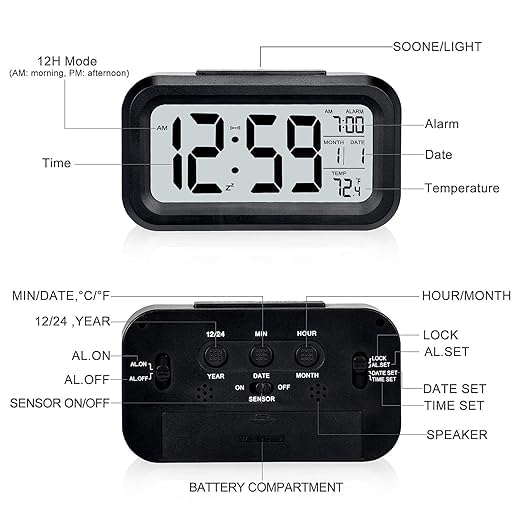 - تحتوي العبوة على: 1× ساعة منبه رقمية
