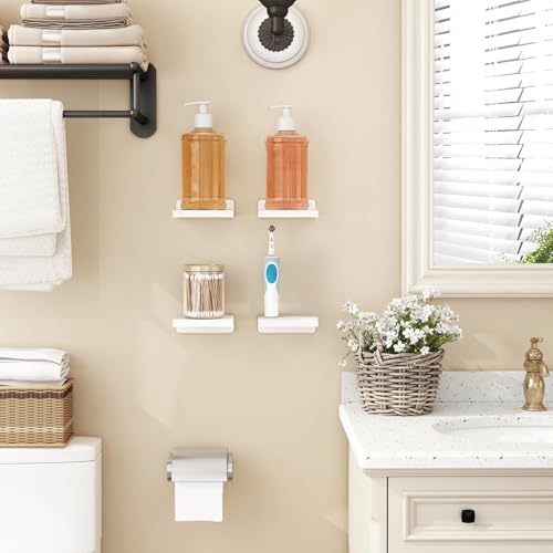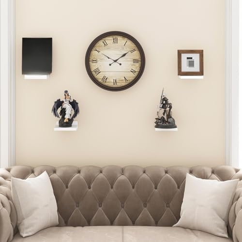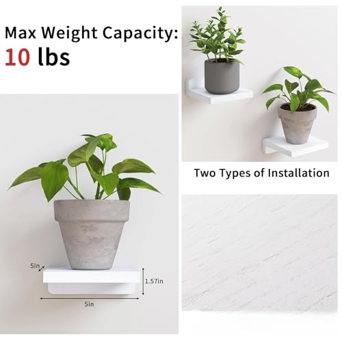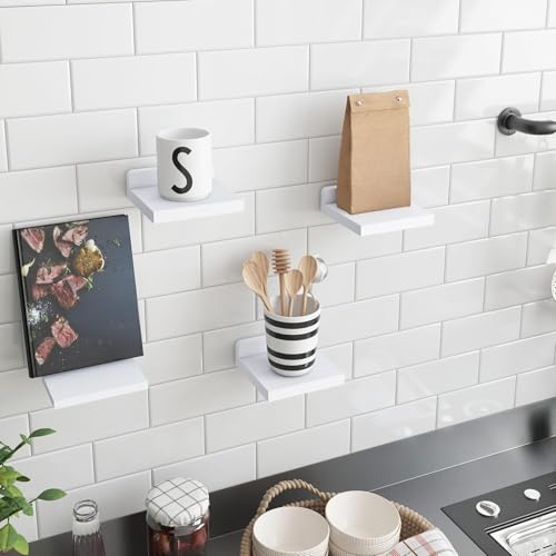 THE WHITE SHOP - ذا وايت شوب ارفف عائمة للجدار، ارفف صغيرة من الخشب الريفي تثبت على الحائط لغرفة النوم وغرفة المعيشة والمطبخ والحمام مجموعة من 4 قطع، 5 × 5 انش (ابيض)