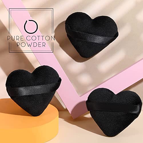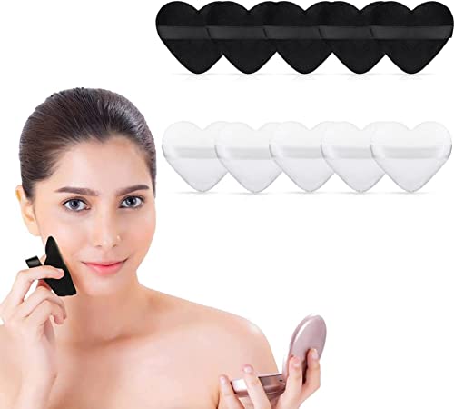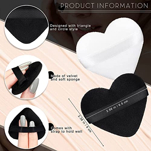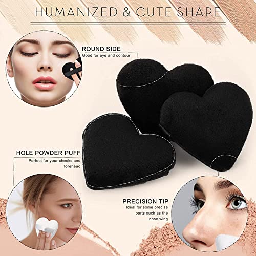 THE WHITE SHOP - اسفنجة بودرة من قطن نقي مخملي ذا وايت شوب مكياج بشريط استك لوضع الكونتور تحت العينين والزوايا اداة لمستحضرات التجميل 5 قطع اسود ابيض نمط قلب