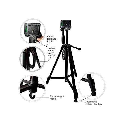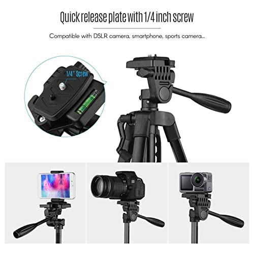 - حامل ثلاثي القوائم من الألومنيوم خفيف الوزن من الدرجة الاحترافية مع قابلية تعديل الارتفاع، أرجل مطاطية عالية الجودة قابلة للقفل ومتوافق على نطاق واسع مع جميع كاميرات الفيديو والكاميرات الرقمية والثابتة وأجهزة جو برو والموبايلات.