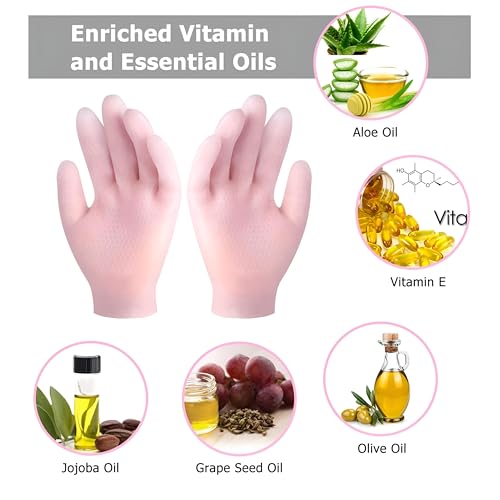 Generic - قفازات علاجية - قفازات من جل السيليكون مع صبار الألوفيرا لليدين والقدمين الجافة والمتشققة وعلاج الاكزيما والجلد الخشن وإصلاح البشرة والترطيب، مقاس واحد يناسب الجميع (زوج)