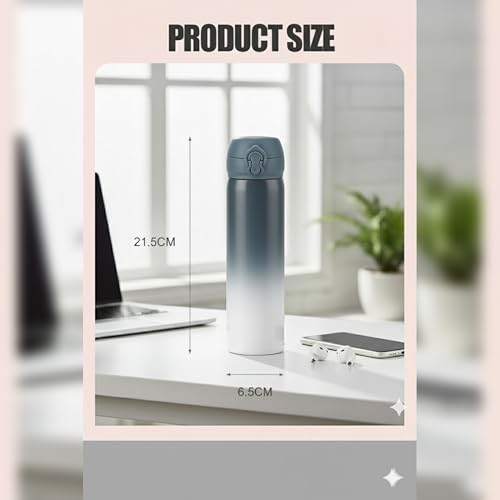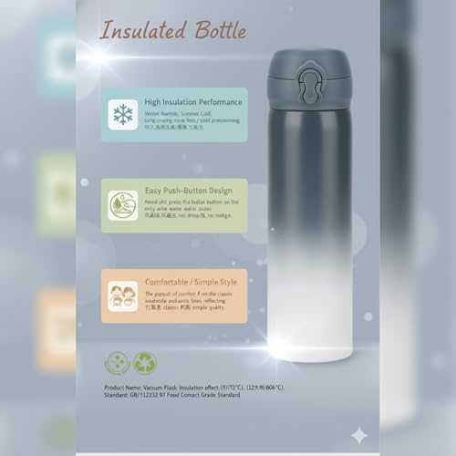 Generic - زجاجة حرارية حافظة للحرارة والبرودة بغطاء فتح بزر أمان سعة 500 مل – ستانلس ستيل مزدوج الجدار، مانع للتسرب، للاستخدام في السيارة والمكتب والسفر، مناسب للقهوة والشاي والماء (رمادي)