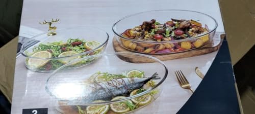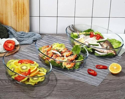Generic - طقم طواجن حرارية – 3 قطع بأحجام مختلفة – مقاومة للحرارة – للفرن والميكروويف والفريزر – تصميم بيضاوي أنيق