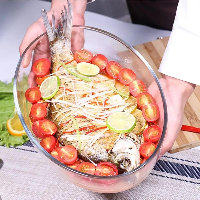 - تصميم عملي: شكل بيضاوي أنيق مع حواف عالية، مثالية لتقديم الطعام وتخزينه بشكل جذاب