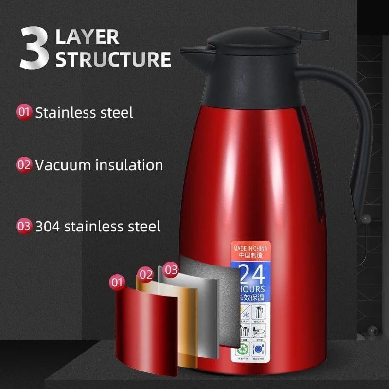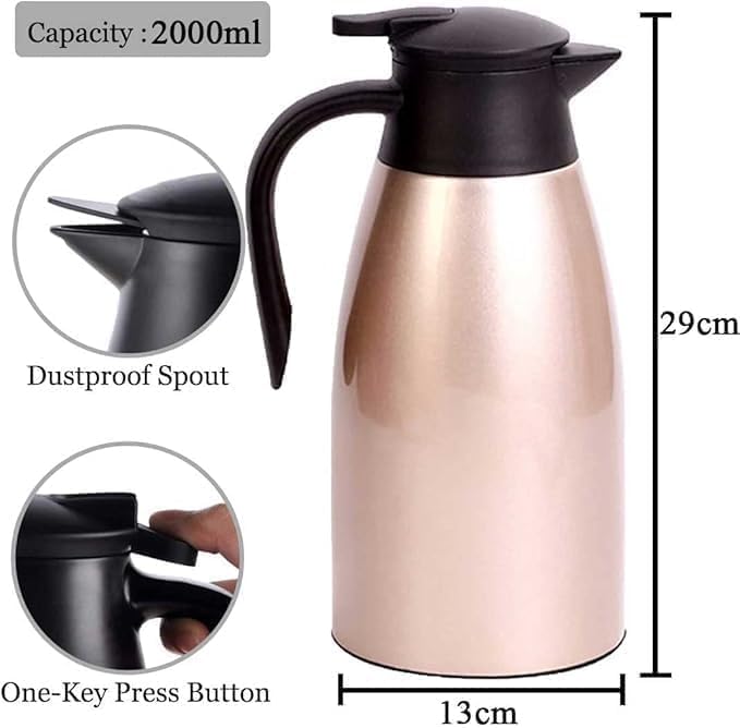 Generic - إبريق قهوة حراري - ترمس معزول بالفراغ من الفولاذ المقاوم للصدأ بجدار مزدوج - غطاء مقاوم للتسرب مع غطاء للغبار - مقبض بارد الملمس - يحتفظ بالحرارة والبرودة - 2 لتر (بنفسجي)