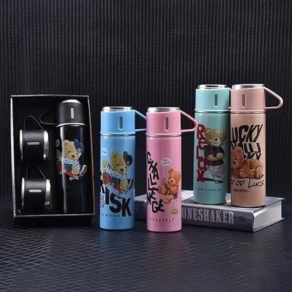 Generic - حراري للقهوة، ، رسومات دباديب زجاجة مياه معزولة بتفريغ الهواء، زجاجة معزولة بسعة 500 مل/16.9 اونصة، بكوب للمشروبات الساخنة والباردة، مج للسفر،