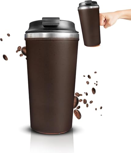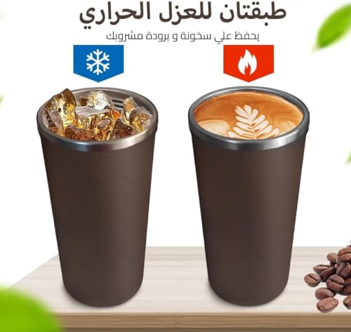 Generic - مج قهوة حراري - كوب مفرغ من الهواء من الستانلس ستيل بجدار مزدوج عازل يحافظ على المشروبات ساخنة وباردة، غطاء مانع للتسرب، خالي من BPA، مقبض مضاد للانزلاق (بني، 500 مل)