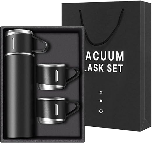 Generic - مج حراري للقهوة ، من الفولاذ المقاوم للصدأ، زجاجة مياه معزولة بتفريغ الهواء، زجاجة معزولة بسعة 500 مل، بكوب للمشروبات الساخنة والباردة، مج للسفر، (أسود، ثلاثة أكواب)