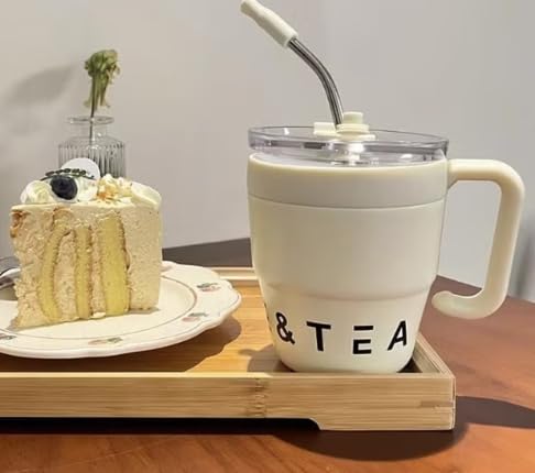 Generic - كوب قهوة حراري بغطاء وماصة من الستانلس ستيل سعة 480 مل، زجاجة حرارية مانعة للتسرب، كوب شاي وقهوة، ابريق مفرغ من الهواء، اكواب معزولة، بيج