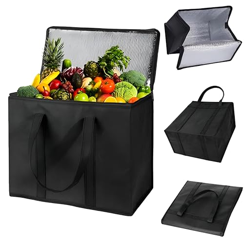 Generic - حقيبة تبريد وحرارية، 30 لتر- قابلة للطي، قائمة بذاتها، حقيبة طعام متينة معززة، معزولة بمحتويات باردة وساخنة، قابلة لإعادة الاستخدام، البقالة، التسوق، التخييم، النزهات، الشواء، التوصيل