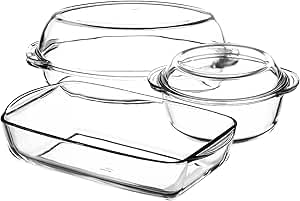 - مجموعة متكاملة: طقم كسرولات من الزجاج الحراري يتضمن أوعية وصواني متعددة الأحجام مع أغطية محكمة الإغلاق لتلبية احتياجات الطهي والتخزين المختلفة
