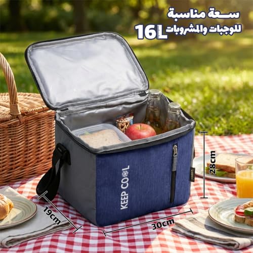 Generic - شنطة غداء حرارية معزولة سعة 16 لتر مقاومة للماء ومانعة للتسرب لتخزين الطعام للوجبات الساخنة والباردة والعمل والمدرسة والنزهات والسفر، BB-526 (ازرق داكن)