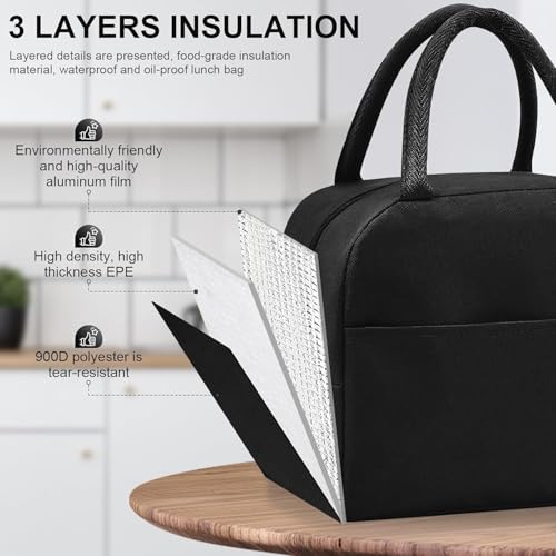 Generic - لانش باج حرارية معزولة مع علبة حفظ الطعام فضية للوجبات الساخنة والباردة بتصميم محمول بسوستة مانعة للتسرب مع مقبض مناسب للوجبات الخفيفة والعمل والمدرسة والنزهات، سعة 2 لتر ((أسود) سمول S)