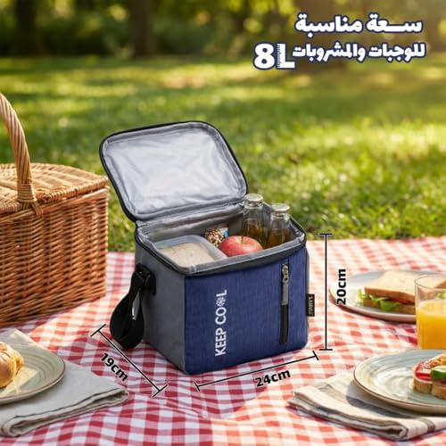 Generic - شنطة غداء حرارية معزولة سعة 8 لتر، مقاومة للماء ومانعة للتسرب لتخزين الطعام للوجبات الساخنة والباردة، للعمل والمدرسة والسفر والنزهات BB-525 (ازرق داكن)