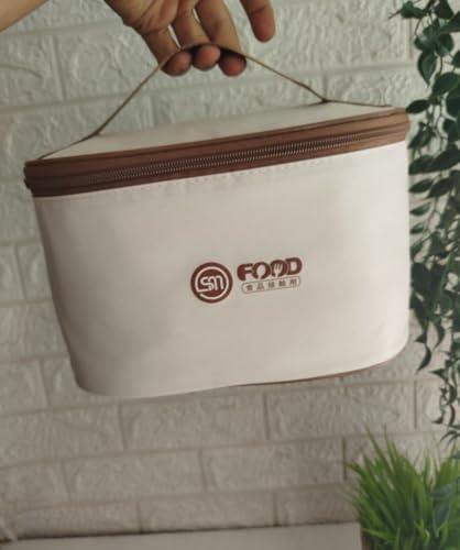 - حقيبة غداء معزولة: مصممة بحقيبة حرارية أنيقة باللون الأبيض مع تفاصيل بنية، تحافظ على درجة حرارة الطعام