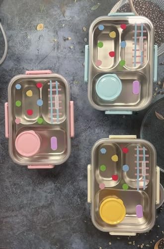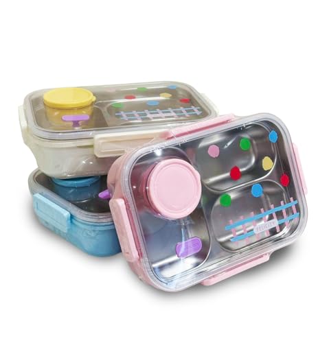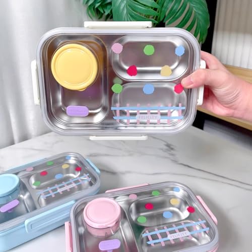 - سعة مثالية وتقسيم عملي: يحتوي على 3 مقصورات (أقسام) منفصلة لحفظ الوجبة الرئيسية والوجبات الخفيفة والفاكهة بشكل منظم، بالإضافة إلى حاوية دائرية مخصصة للصلصات أو المرق، مما يشجع على تناول وجبة متوازنة وصحية.