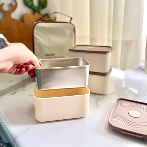 Generic - طقم حافظة طعام حرارية 3 قطع، حاويات استانلس ستيل معزولة، مع حقيبة عزل حراري، لحفظ الوجبات ساخنة أو باردة