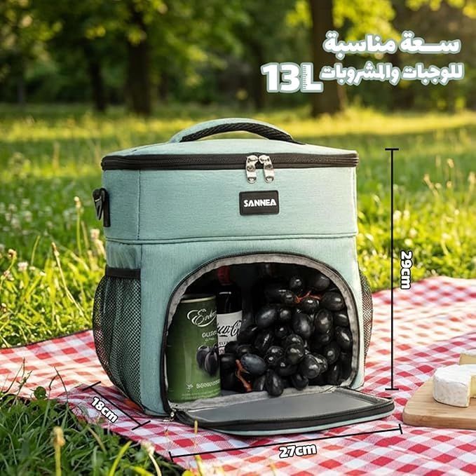 Generic - شنطة غداء حرارية سعة 13 لتر، مبرد طعام معزول مقاوم للماء ومانع للتسرب مع مقابض للمكتب والمدرسة والرحلات والنزهات (BB-527) (اخضر)
