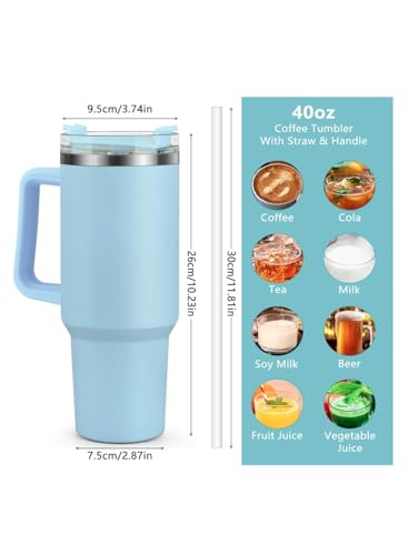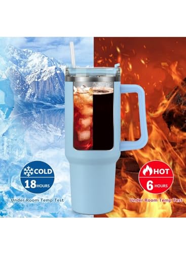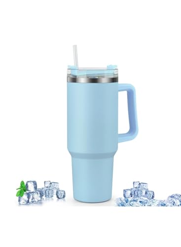 generic - كوب حراري، كوب 40 اونصة مع ماصة ومقبض، كوب قهوة 1200 مل، كوب معزول بتفريغ الهواء من الستانلس ستيل بجدار مزدوج