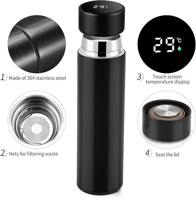 Generic - كوب حراري 500 مل – شاشة رقمية لقياس درجة الحرارة وصفاية للشاي والأعشاب – يحافظ على الحرارة والبرودة حتى 12 ساعة – صحي وعملية للمكتب والسفر Ka