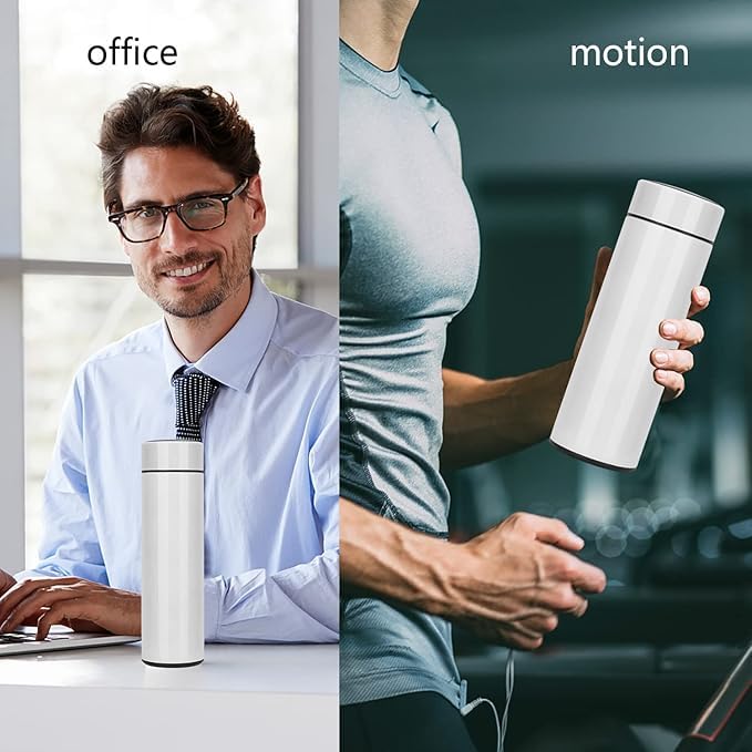 - الكوب الحراري بسعة 500 مل يحافظ على المشروبات ساخنة لمدة 12 ساعة وباردة لمدة 24 ساعة. شاشة ليد لعرض درجة الحرارة للتحقق الفوري من الحرارة. مصنوع من الفولاذ المقاوم للصدأ 304 الآمن للطعام وخالي من مادة بيسفينول أ. العزل الفراغي مزدوج الجدار يمنع فقدان الحرارة. غطاء برغي محكم الإغلاق، مثالي للسفر أو الصالة الرياضية. تصميم عصري وأنيق يناسب حوامل السيارات والشنط. سهل التنظيف، مقاوم للصدأ، ومتّين للاستخدام اليومي. مثالي للقهوة، الشاي، الماء، أو الحساء.