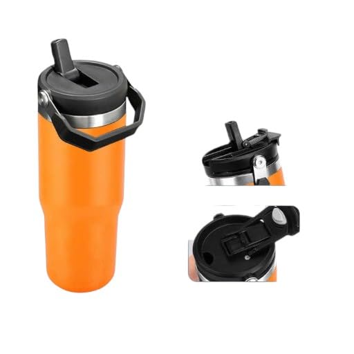 Generic - كوب حراري مع غطاء محكم وقشّة – 3 طرق للشرب، تصميم عصري وأنيق (اورانج)