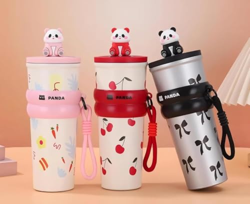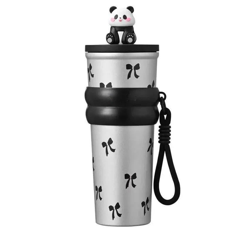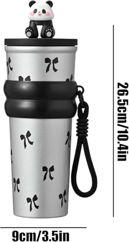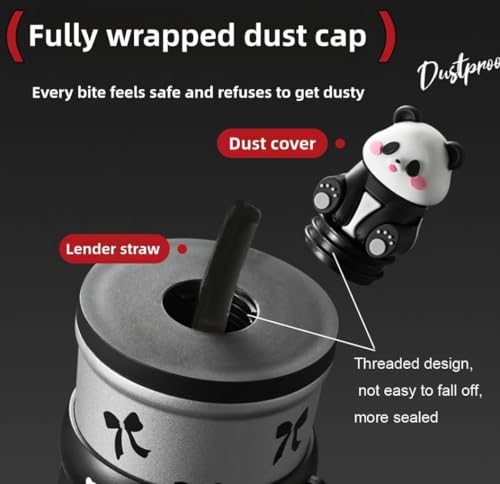 - تصميم لطيف وجذاب: مزين بنقوش فيونكات سوداء وتمثال باندا على الغطاء.