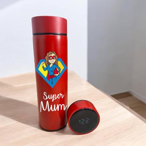 Generic - مج حراري بشاشة رقمية - احمر - هدية عيد الام - بعبارة سوبر موم - ملصق مقاوم للماء - طباعة على جانب واحد - نحن نطبع هديتك