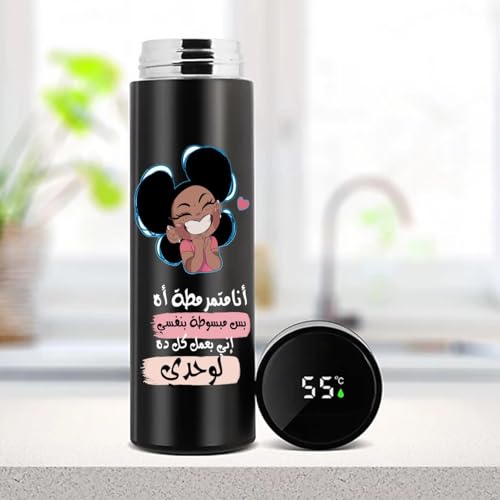 Generic - مج حراري بشاشة LED تعمل باللمس - اسود - هدية لها - ملصق مقاوم للماء - طباعة على جانب واحد - تصميم هزلي - متمرمطة بس مبسوطة - هدايا مميزة- نحن نطبع هديتك