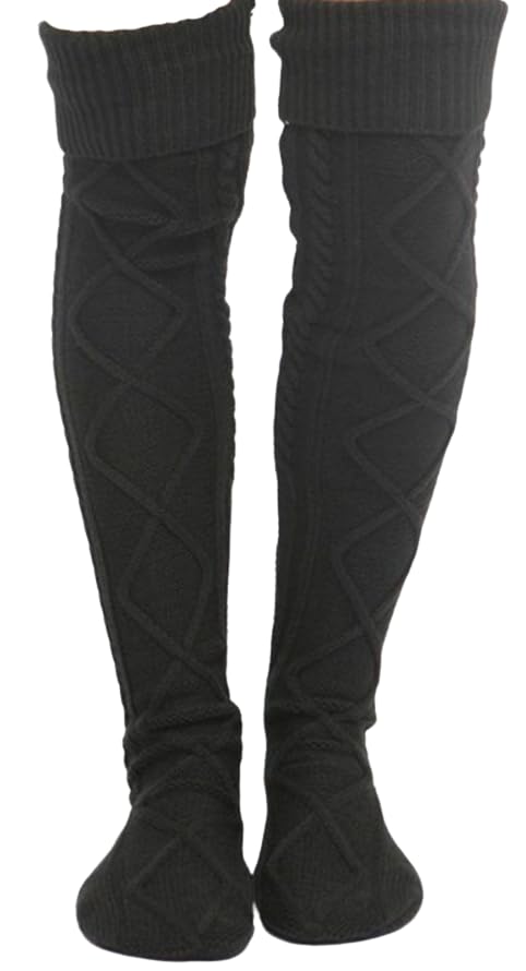 Generic - جوارب حرارية فوق الركبة محبوكة للتدفئة في الشتاء حتى الفخذ، لون اسود، زوج واحد، مقاس واحد