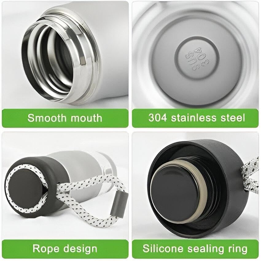 - مصنوعة من الستانلس ستيل 304 المتين والآمن غذائيًا، لا تضمن هذه الزجاجة الحفاظ على المذاق النقي والسلامة فحسب، بل توفر أيضًا متانة عالية ومقاومة للصدأ والتآكل، مما يجعلها رفيقًا موثوقًا به للترطيب اليومي.