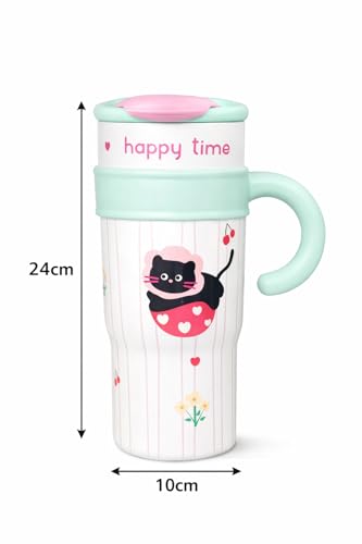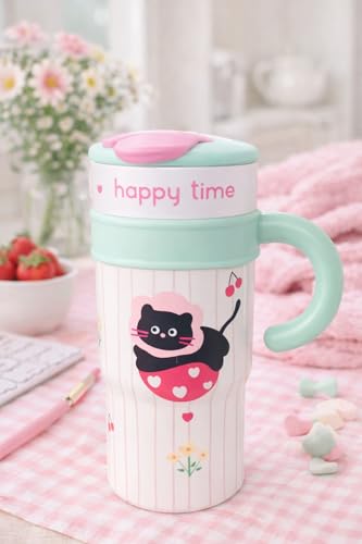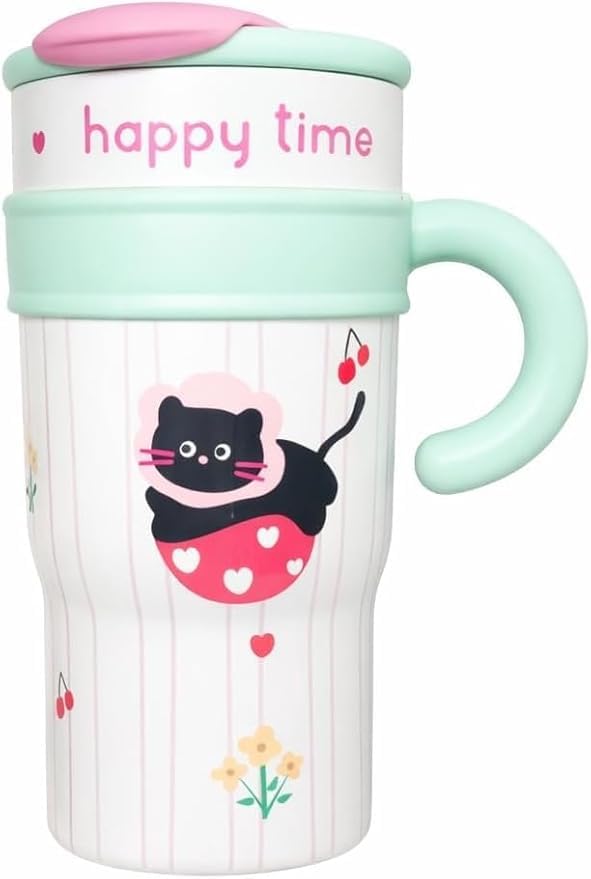 Generic - زجاجة مياه حرارية مع ماصة سعة 1200 مل من الستانلس ستيل بجدار مزدوج مع مقبض وغطاء مقاوم للتسرب للقهوة والسيارة والاماكن الخارجية (F-1535) (اخضر)