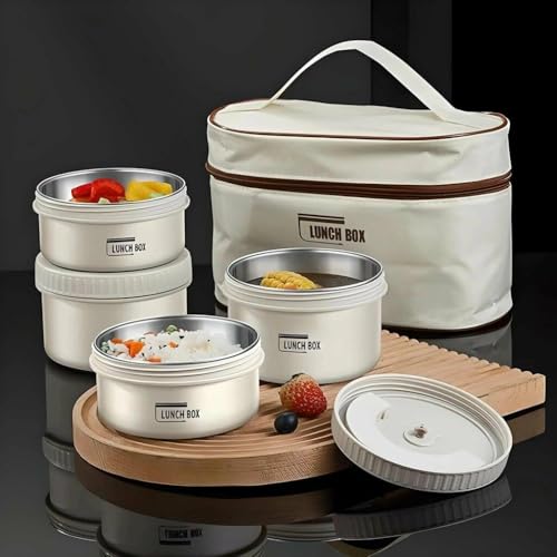 - مجموعة صندوق الغداء الحراري 4 × 1 مع حقيبة معزولة تتضمن أربع حاويات (2 × 420 مل + 2 × 550 مل)، مما يحافظ على الطعام ساخنًا أو باردًا لساعات - مثالي للعمل أو المدرسة أو الرحلات.