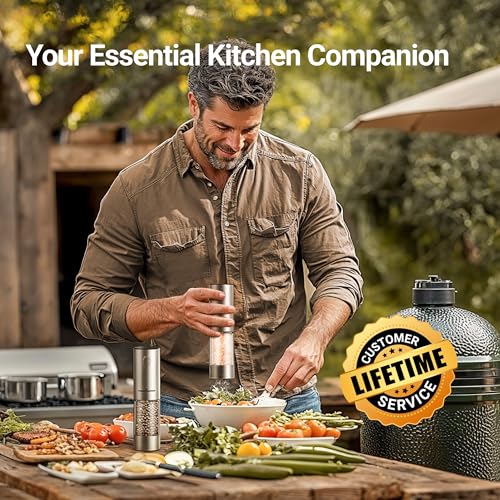 - فولاذ مقاوم للصدأ فاخر: صُنعت مجموعة مطحنة الملح والفلفل الكهربائية الخاصة بنا من الفولاذ المقاوم للصدأ عالي الجودة، وهي لا توفر المتانة فحسب، بل تتميز أيضًا بمظهر أنيق وعصري يكمل أي مطبخ أو طاولة طعام.