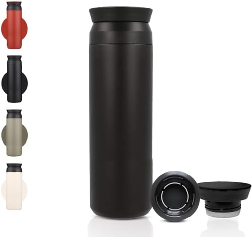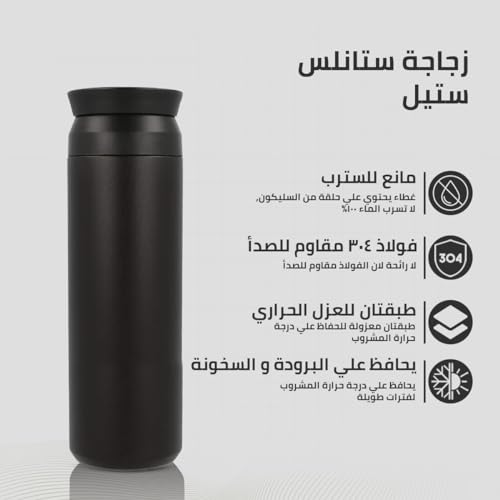 Generic - زجاجة مياه رياضية ترمس حراري-مقاومة للتسرب، ستانلس ستيل معزولة بتفريغ الهواء، جدار مزدوج، مج ترموس معدني (أبيض 500 مل) (اسود)