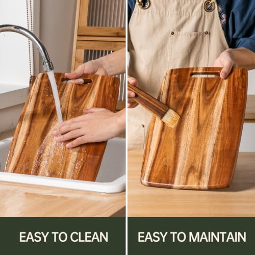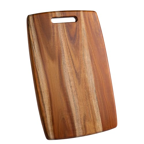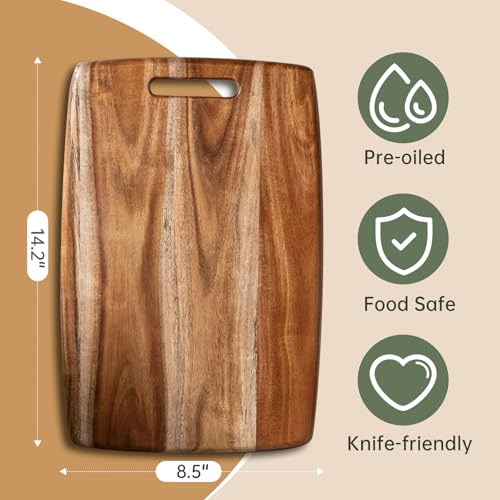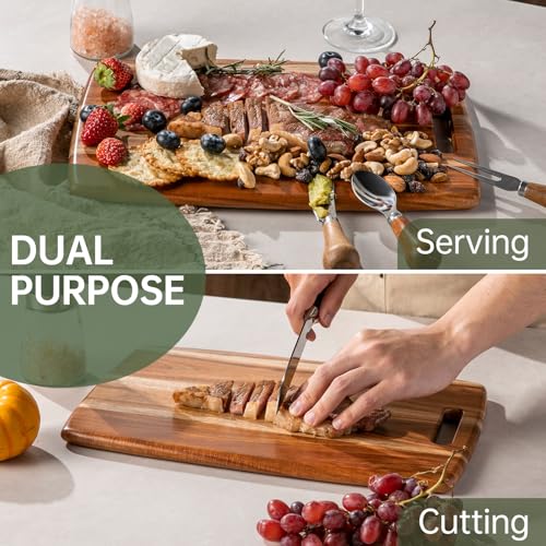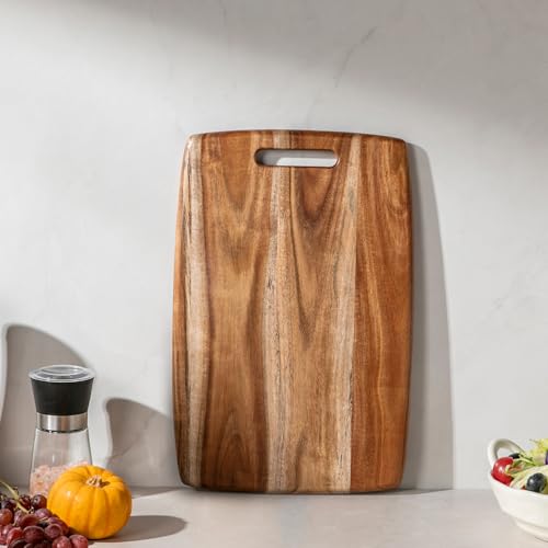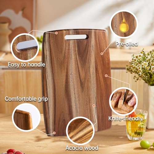 thetchry - لوح تقطيع من خشب اكاسيا بمقبض يدوي من ثتشري، لوح تقطيع قابل للعكس لاعداد الوجبات في المطبخ، نحت اللحوم والفواكه والخضروات، 14 انش طول × 9 انش عرض × 0.6 انش ارتفاع